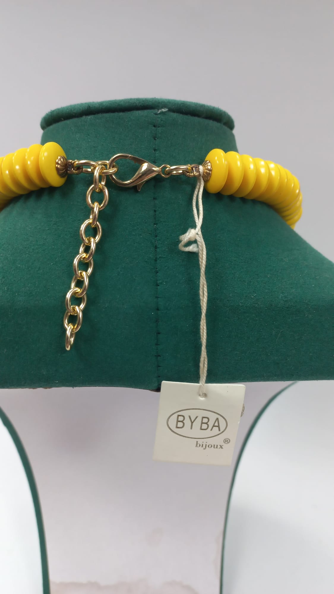 collana estiva della linea di byba bijoux con chiusura con gancio e catenina regolabile color oro.
