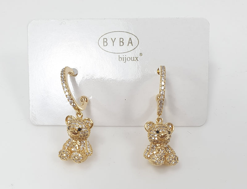 Orecchini donna a cerchio con ciondolo pendente a forma di orso.