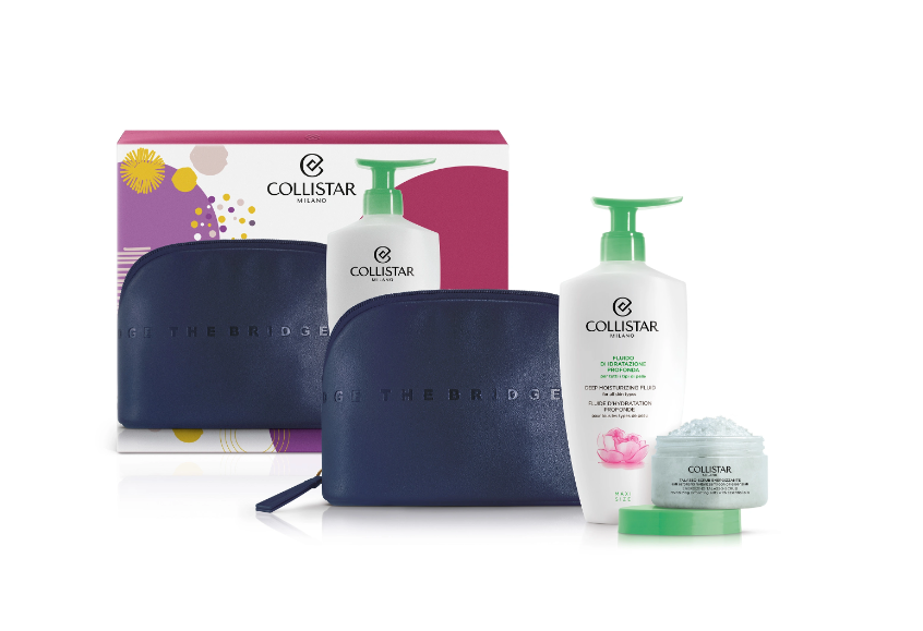 The Bridge, eccellenza della pelletteria italiana, firma le esclusive Beauty-Bag dei cofanetti regalo Collistar. Le trousse sono abbinate ai prodotti Collistar più amati: scegli la tua combinazione tra le proposte delle linee Trucco, Viso, Corpo e Uomo. Le Beauty-Bag hanno un design elegante ed essenziale, impreziosito dall’iconico maxi-logo The Bridge sul fronte, richiamo all’heritage del brand, e sono realizzate nei colori più contemporanei e versatili: fucsia, blu e cuoio.