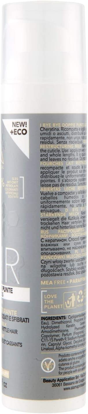 Alama Repair Latte Ristrutturante Bye Bye Doppie Punte per capelli danneggiati e sfibrati alla Cheratina ricompatta e sigilla la cuticola. 0% SLES, Parabeni, Coloranti.