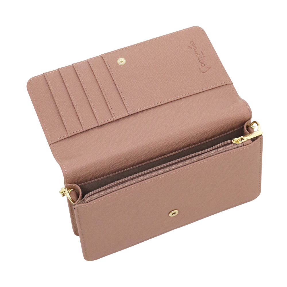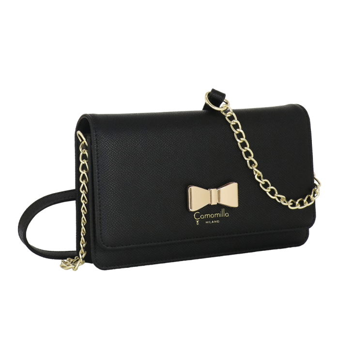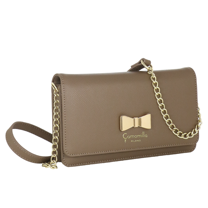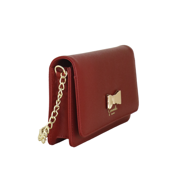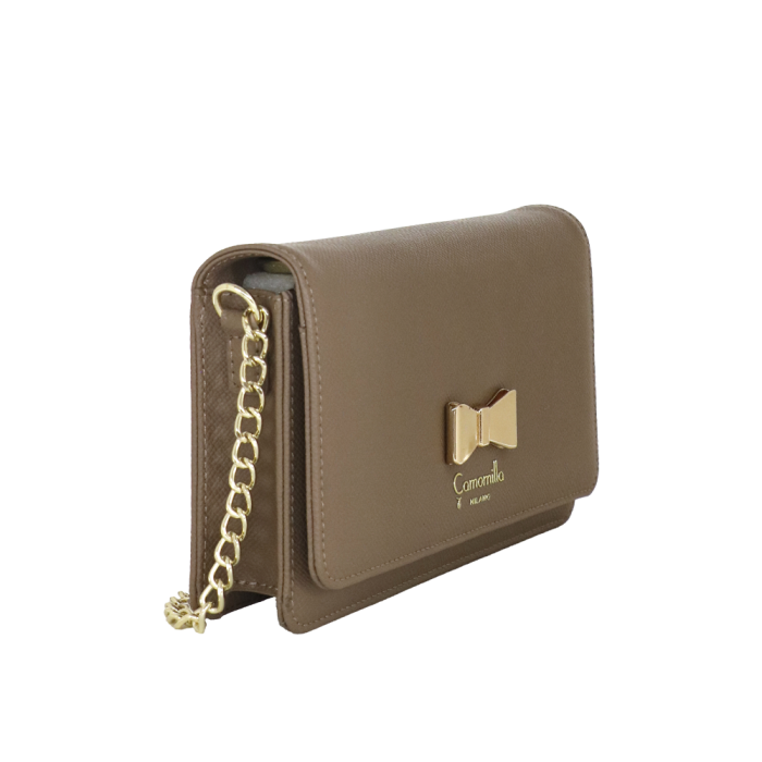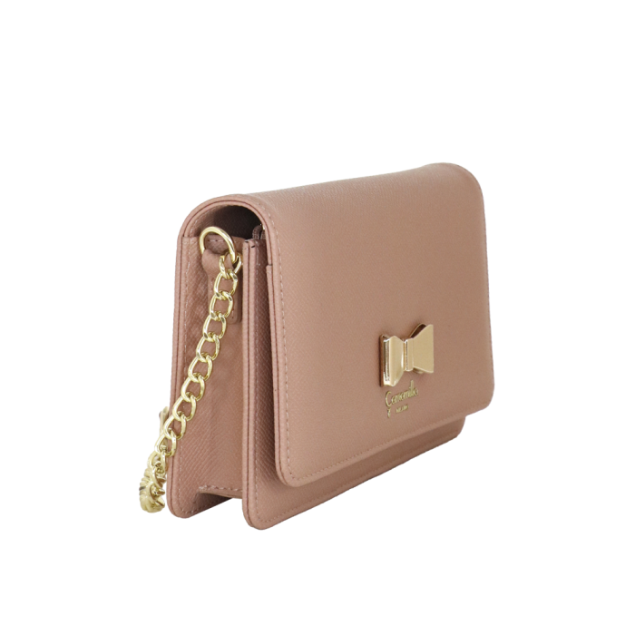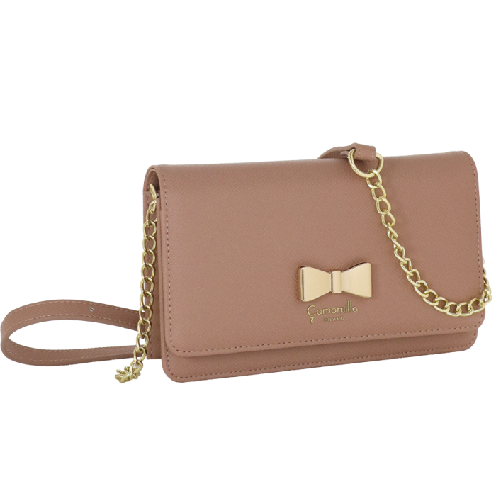 BORSA PORTAFOGLIO NICE OFFICE ROSA, leggera e versatile, tracolla elegante con catena e pelle sintetica regolabile. La particolarità è la sua organizzazione interna, con porta carte e ampi scomparti, come la tasca grande utilizzabile come portacellulare e una seconda tasca piatta con zip, per documenti o banconote. Chiusura con patta e automatico. Realizzata in un particolare saffiano martellato. Collezione sviluppata in quattro varianti colori, rosso, nero, taupe e rosa cipria. Personalizzata con fiocco in metallo e stampa a rilievo del logo color oro. Dal design pulito e ricercato, il fiocco in metallo dona un tocco di eleganza e romanticismo