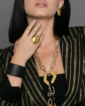Anello regolabile in resina , base regolabile in ottone dorato.