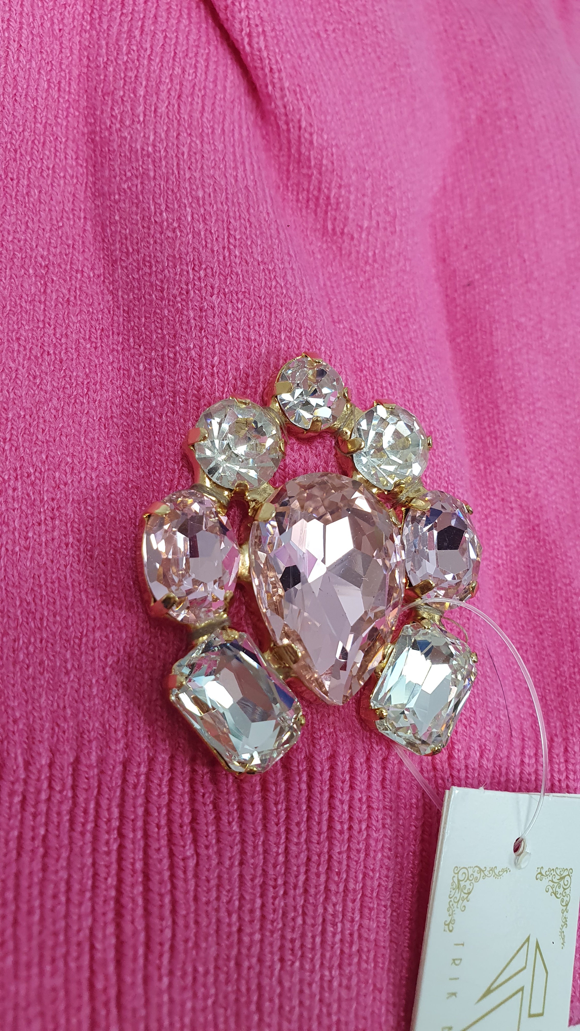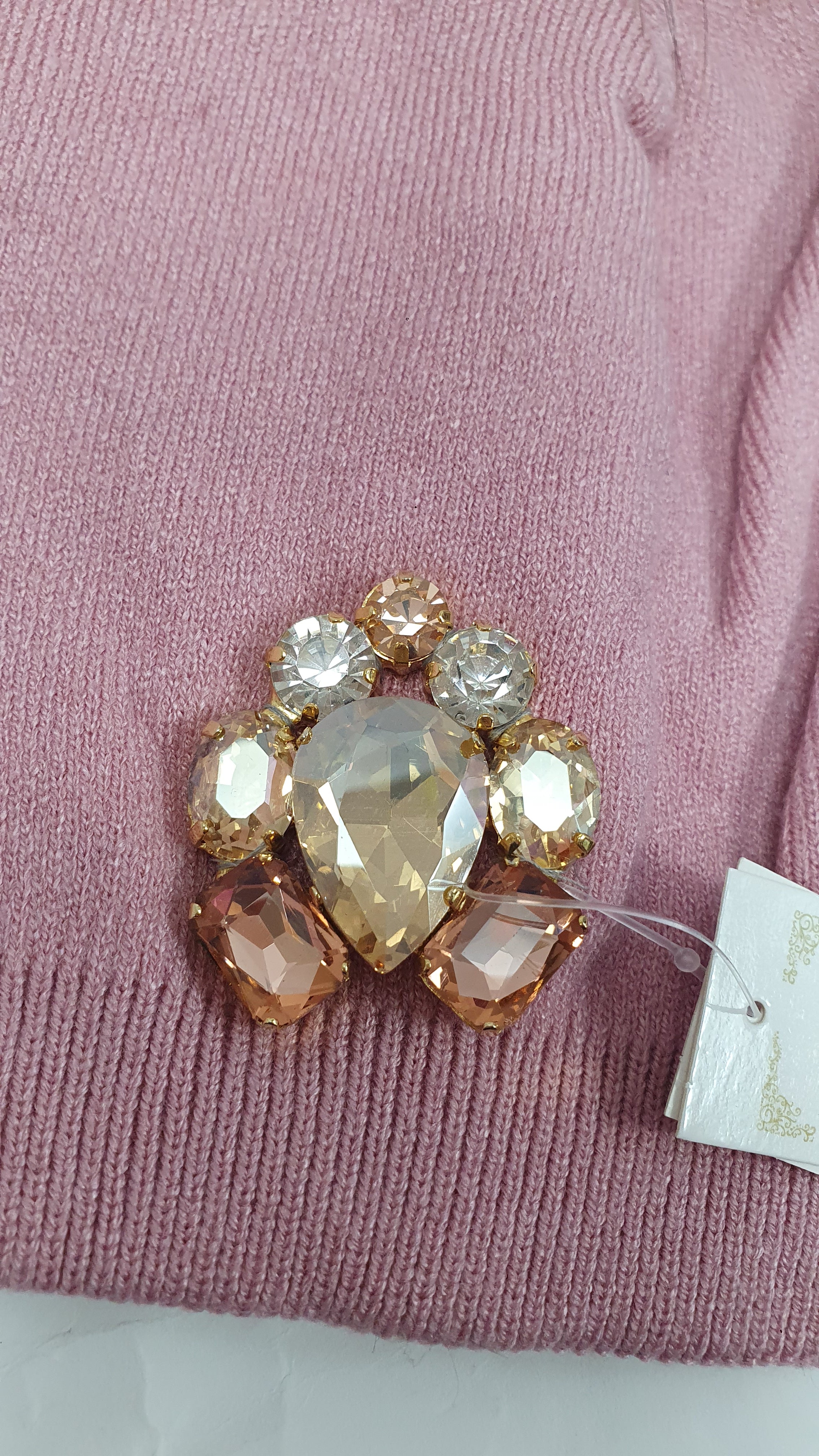 Cappello donna di trik bijoux con applicazioni swarovsky e pon pon grigio/ rosa/ fucsia