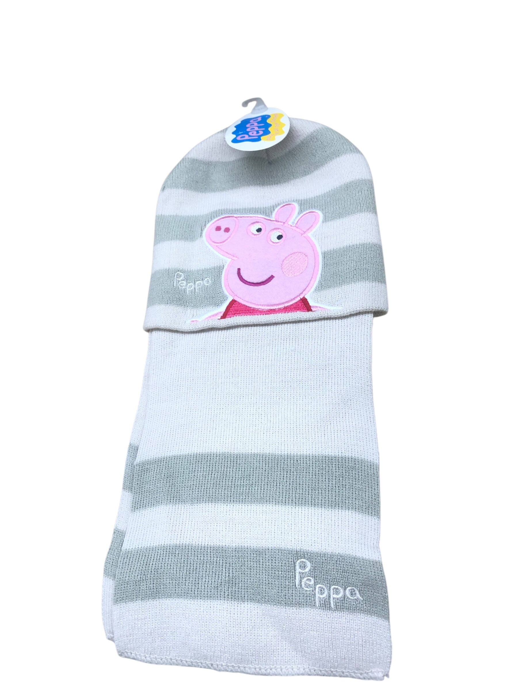 Proteggi la tua piccola principessa con questo bellissimo coordinato in lana con sciarpa e cappello di Peppa Pig