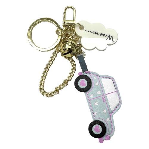 PORTACHIAVI LOVE WROOM AZZURRO MACCHINA IN PELLE SINTETICA, NUVOLETTA IN ACRILICO E CAMPENELLINO PER TROVARE LE CHIAVI FACILMENTE NELLA BORSA. DA USARE SIA COME PORTACHIAVI O COME ACCESSORIO PER LA BORSA GRAZIE AL GANCIO E ALLA CATENA CHE PERMETTONO DI LEGARLO AD UNA ZIP O AL MANICO DELLA BORSA.