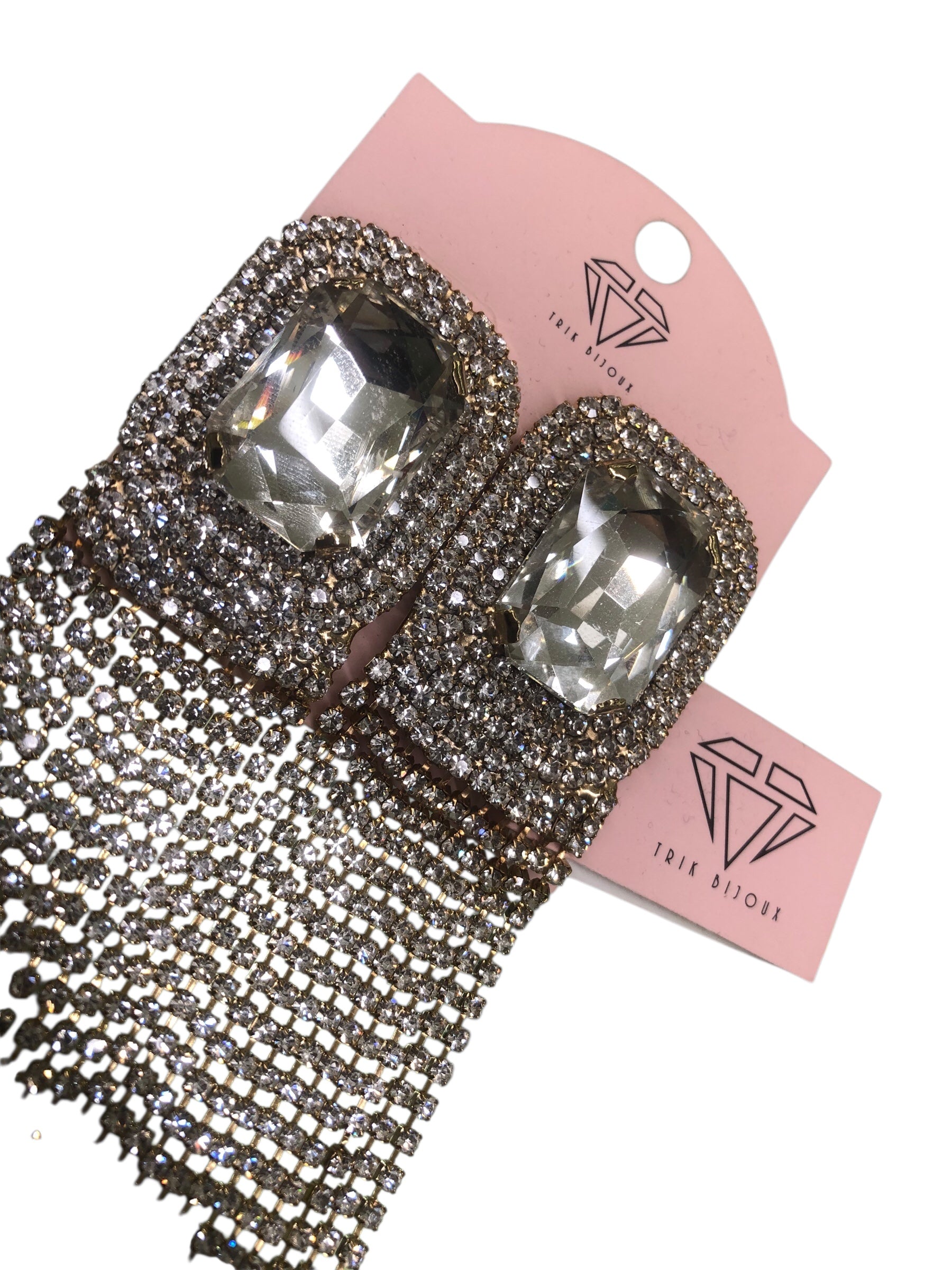 Orecchini di Trik Bijoux con chiusura a Clips in Swarovski con montatura in oro. Eleganti e raffinati per eventi speciali.
