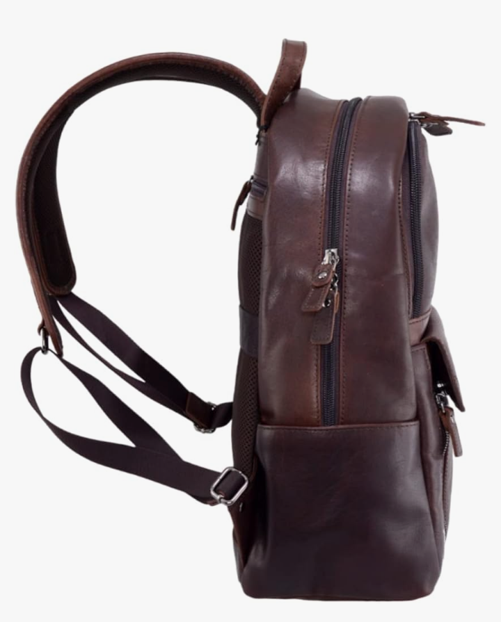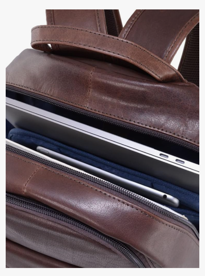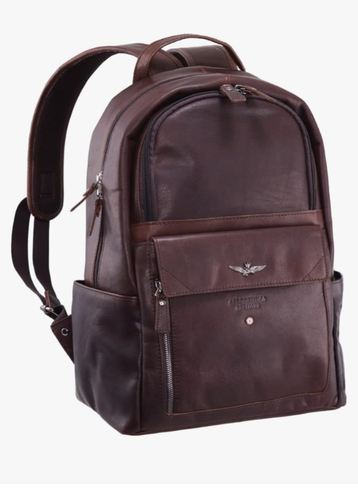 Zaino uomo in pelle Aeronautica Militare, interno in poliestere blu con logo e accessori color canna di fucile. La particolare lavorazione del pellame conferisce al prodotto un gusto affascinante ed intramontabile, tipico dello stile vintage. Lo zaino è dotato di porta PC da 13", porta Tablet, organizer interno e fasce posteriori per poterlo inserire su trolley in modo da poter viaggiare comodamente.