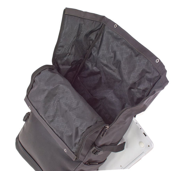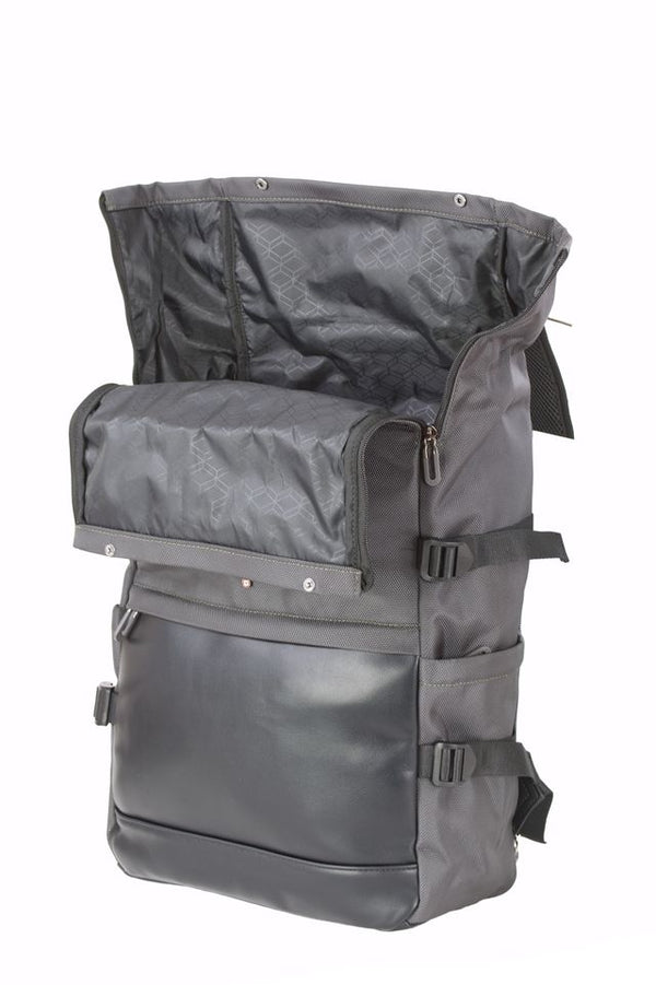 I due zaini, in monospalla e la tracolla sono definiti da chiusura roll-top, fibbie funzionali e l’inconico marchio in metallo, esprimendo unìestetica moderna, grintosa e strutturata.
